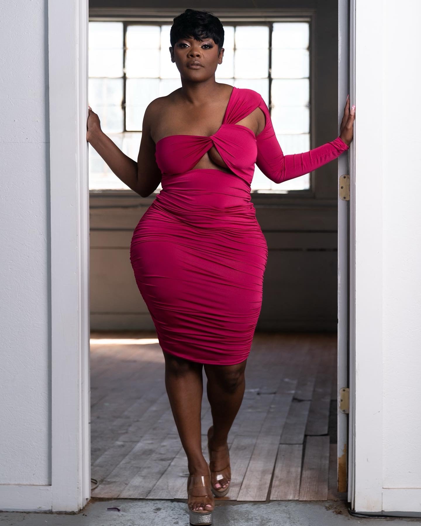 Our All purpose Cross Me dress is definitely a statement piece needed in your closet !! Take me out to dinner ! Very stretchy can go a size down , but if top heavy , order your normal size. Light weight Fabric, and it is not see thru !!