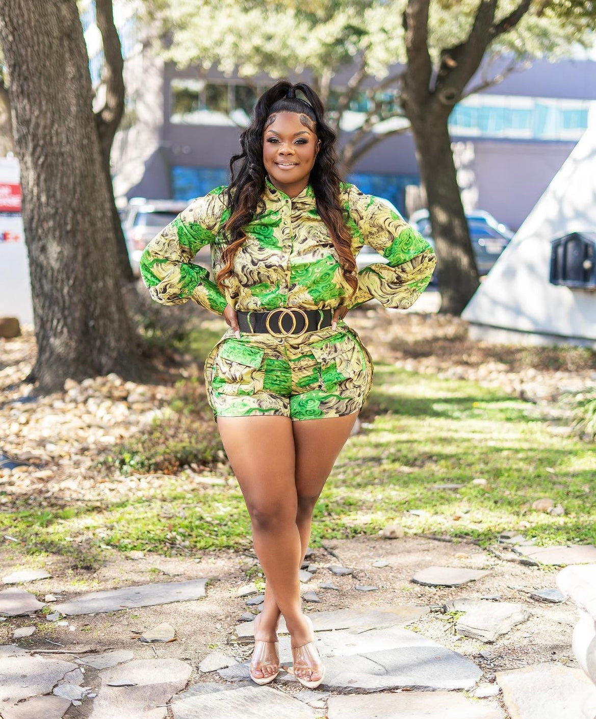 This Floral printed 2 pcs set is definitely a Look,She Ready to go ,but she has  no stretch full button up top high waist shorts belt included ..